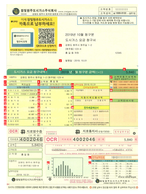 가스 요금 청구서