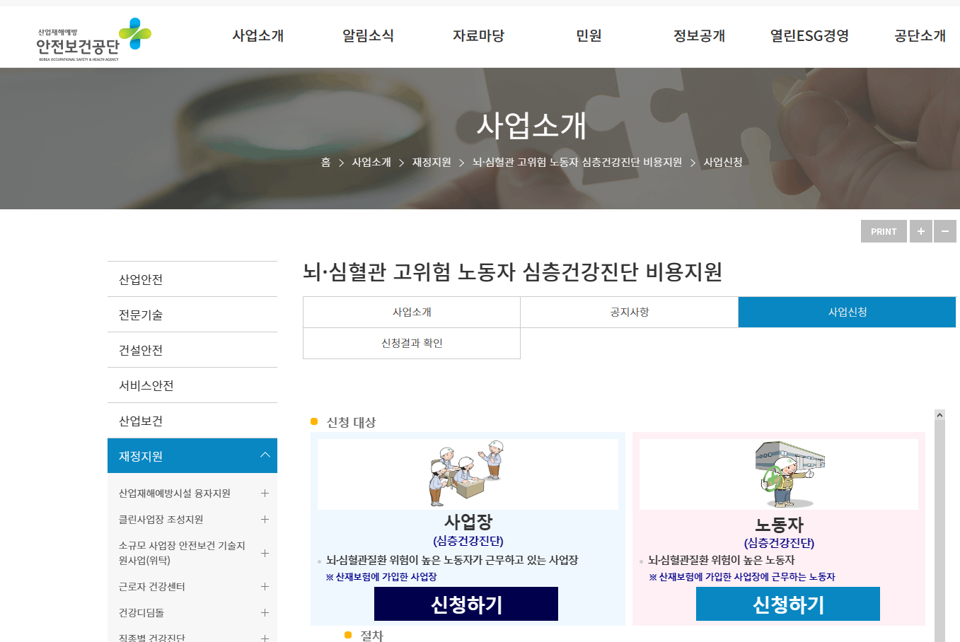 ✅ 한국산업안전보건공단 홈페이지에 접속 > 자주 찾는 메뉴 > 뇌·심혈관 고위험 노동자 심층건강진단 비용지원에 들어가서 신청서 작성 및 제출을 하시면 됩니다.