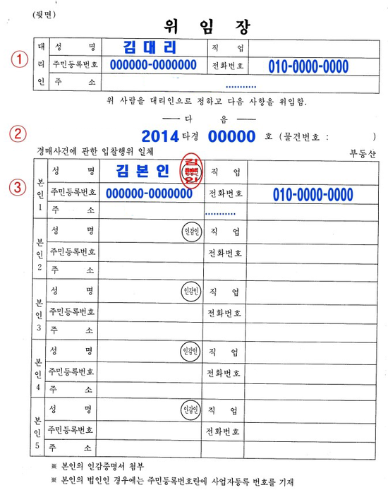 위임장 : 대리인이 입찰을 대행할 수 있다는 위임장을 작성하여 첨부합니다. 위임장은 법적인 효력을 갖기 위해 반드시 필요한 서류입니다.