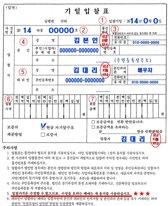 기한 준수 : 입찰서는 정해진 기한 내에 제출해야 하며, 기한을 놓치면 입찰이 불가능해집니다. 경매 일정에 맞춰 미리 준비하는 것이 중요합니다.