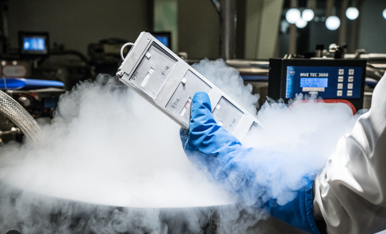 4. 제대혈 저장 : 제대혈이 제대혈 은행에 도착하면, 미생물 검사, 세포 생존도 검사 등을 실시하여 제대혈의 품질을 확인합니다. 검사 결과 이상이 없는 제대혈은 질소탱크에 담겨 -196°C의 액화질소 냉동 시스템에 보관 됩니다. 이렇게 보관된 제대혈은 15년 이상 장기 보관이 가능 합니다.