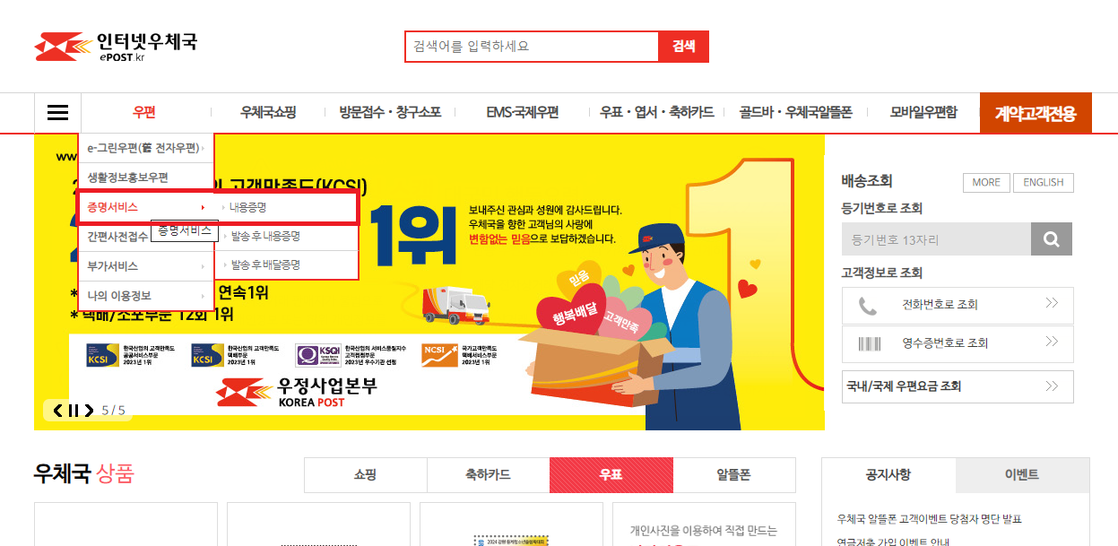 - 인터넷우체국 접속 후, 우편 - 증명서비스 - 내용증명