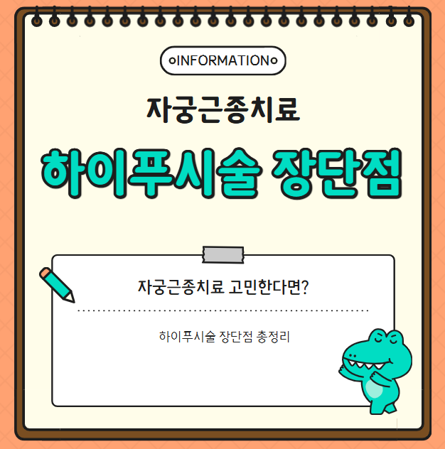 그래서 오늘은 자궁근종 치료를 고민하시는 분들을 위해 하이푸 시술의 장단점과 비용, 부작용 등을 총정리해보려고 합니다. 함께 살펴보실까요?