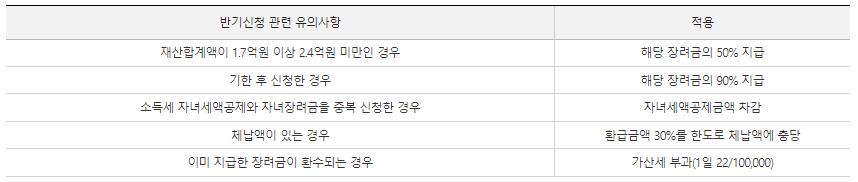 - 기한 후 신청분 : 신청일로부터 4개월 이내 지급