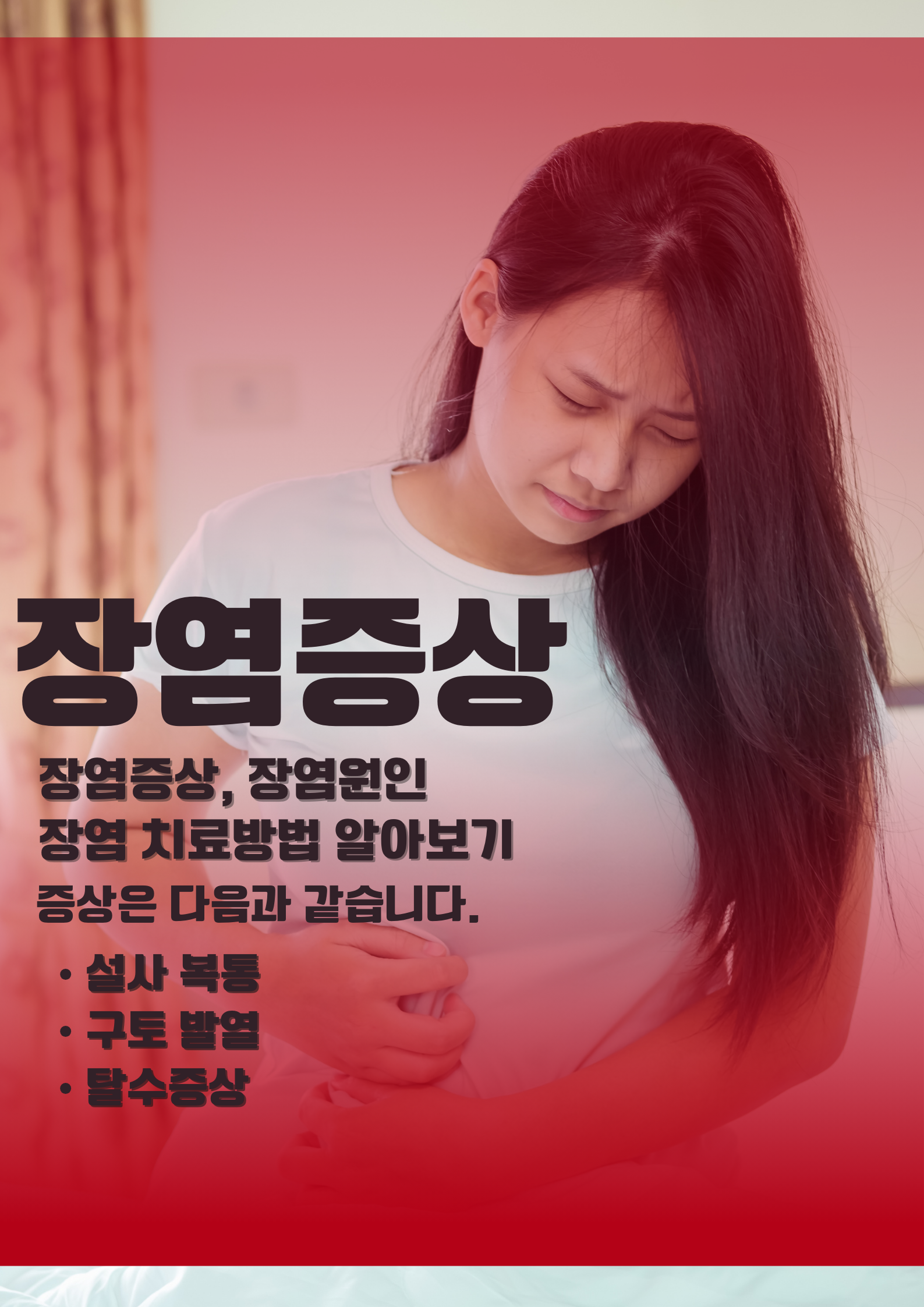 장염은 소장이나 대장에 세균, 바이러스 같은 원인체가 감염되어 발생하며 여러 증상으로 나타납니다.