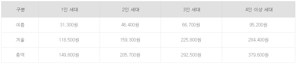 에너지 바우처 지원 금액은 가구원 수에 따라서 상이하며 세대원이 많을수록 더 많은 금액을 지원받게 됩니다. 그리고 겨울바우처가 많이 남았다면 여름 바우처로 당겨 쓸 수 있고 반대로 여름바우처를 겨울방우처로 사용도 가능하니 적절히 이용하신다면 여름철, 겨울철 전기세 부담에서 조금은 벗어나실 수 있을것 같습니다.