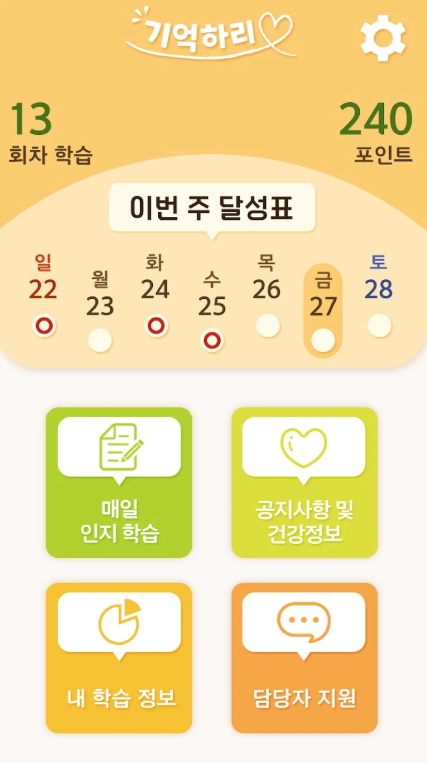 지금까지 '기억하리' 앱 활용 가이드를 소개해드렸습니다. 쉽고 재미있게 치매 예방 학습을 할 수 있어서 누구나 쉽게 이용할 수 있을 것 같은데요. 꾸준한 학습을 통해 치매 예방에 도움 받아 보시길 바랍니다!