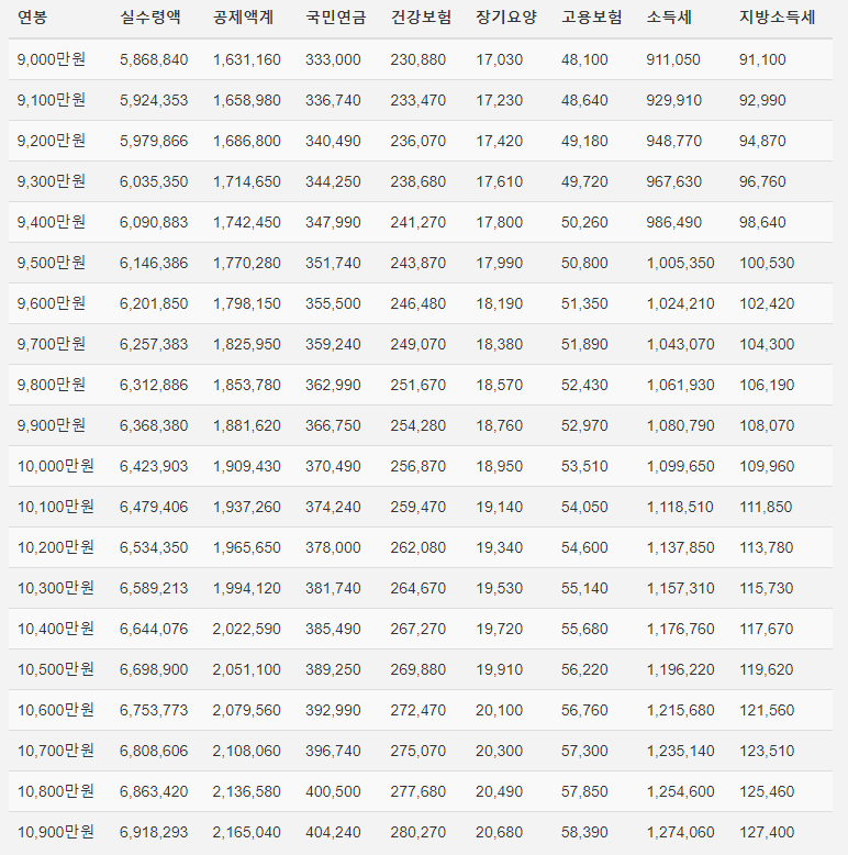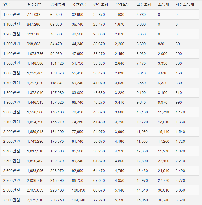 2024년 연봉 실수령액을 알아보도록 하겠습니다.